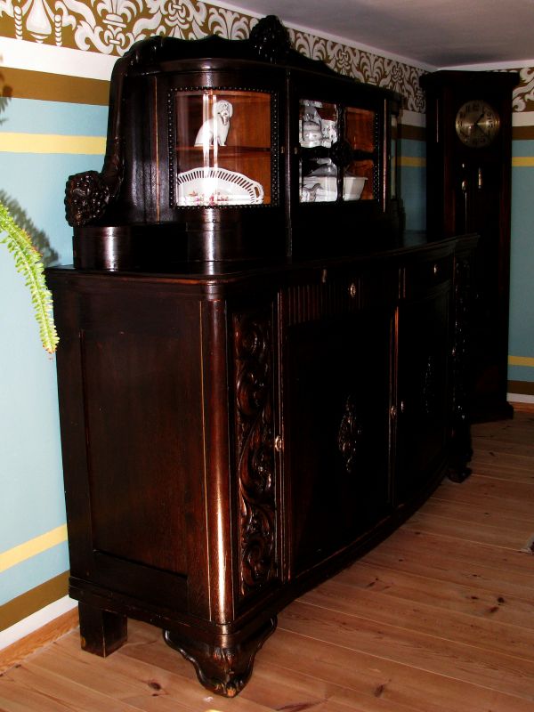 Zagroda Albrechta w Swołowie - wnętrze domu. Na zdjęciu kredens w pokoju dziennym.
