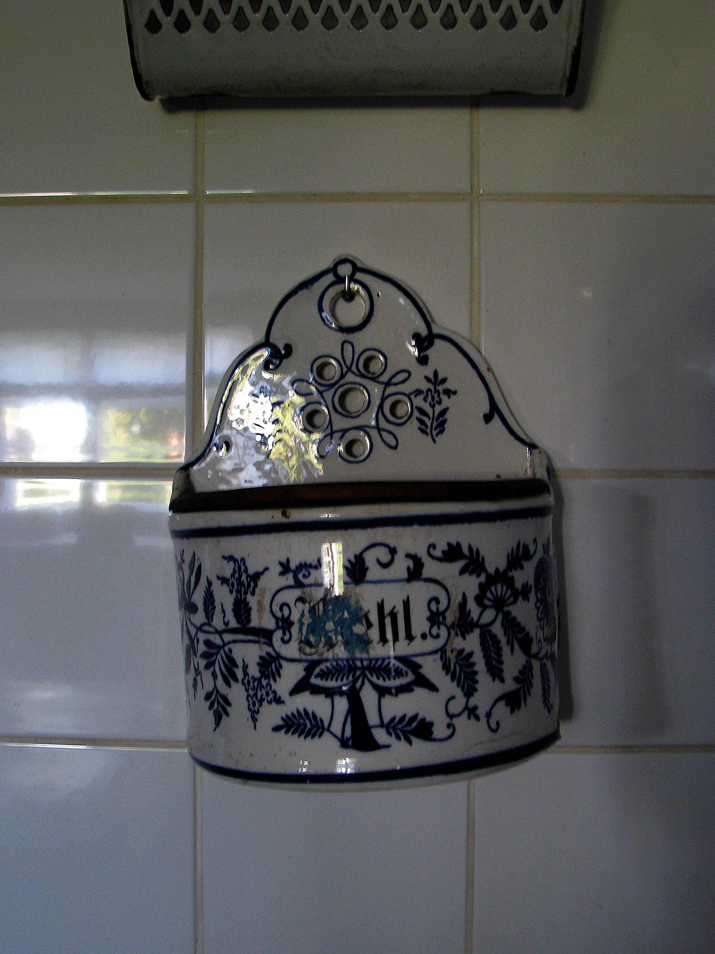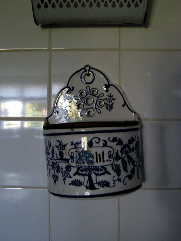 Zagroda Albrechta w Swołowie - wnętrze domu. Na zdjęciu ceramiczny pojemnik kuchenny.