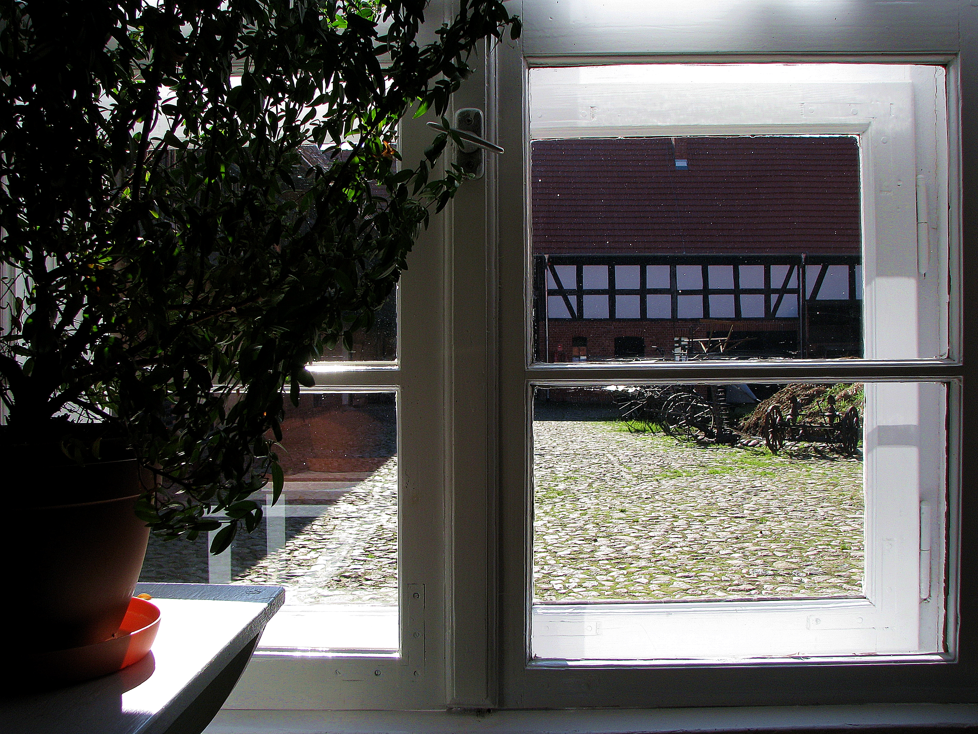 Zagroda Albrechta w Swołowie - wnętrze domu. Widok na podwórko.