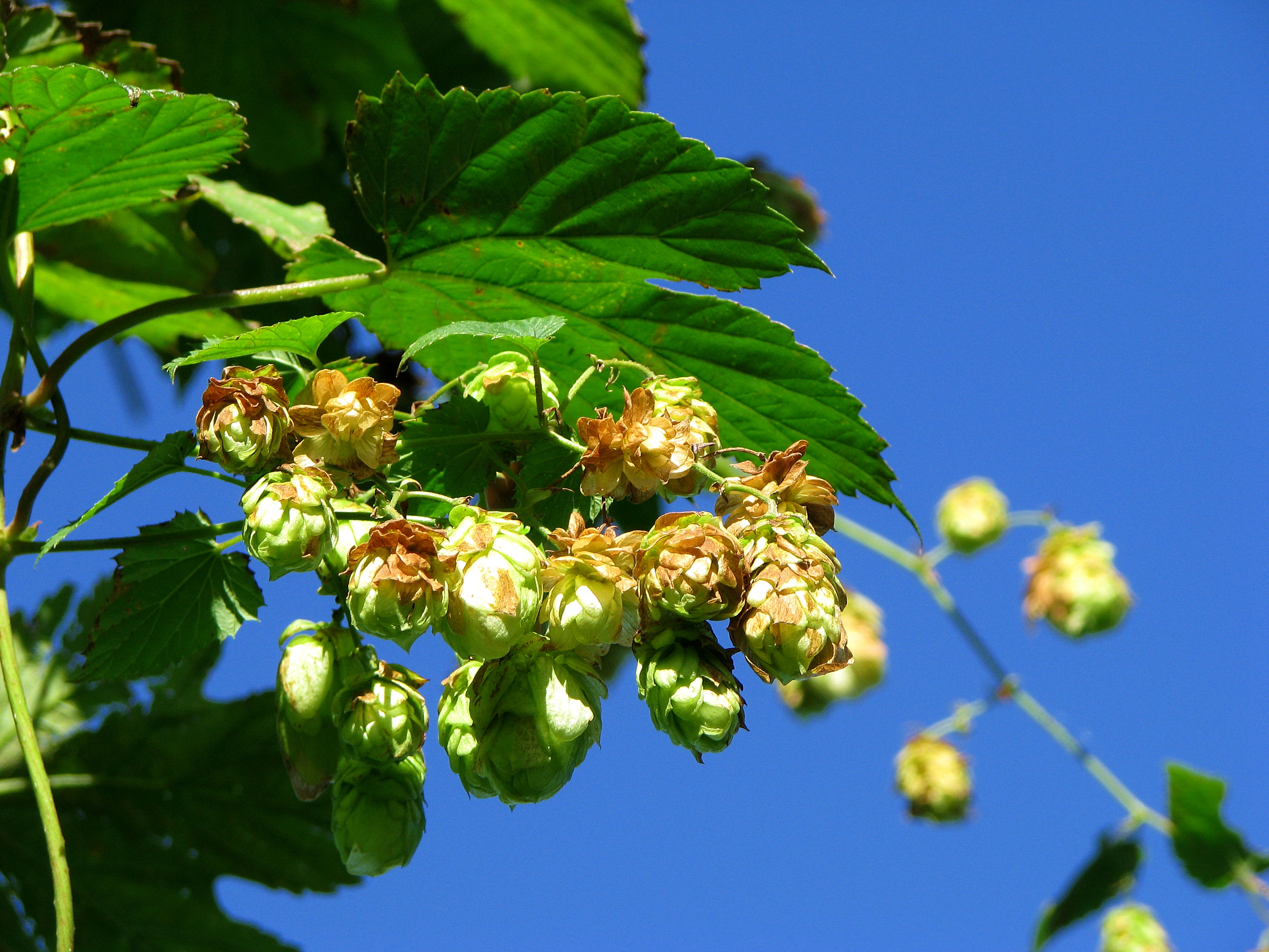 Zagroda Albrechta w Swołowie. Na zdjęciu chmiel rosnący w ogródku.