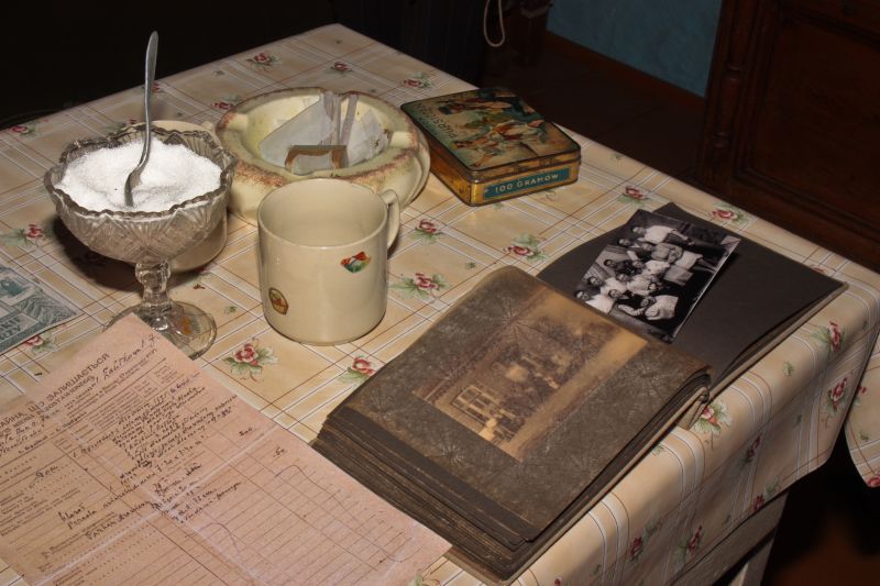 Wyposażenie chałupy ze wsi Stary Las zaaranżowane na dom przesiedleńców z Kresów Południowo-Wschodnich, którzy po 1945 roku przybyli na Ziemie Odzyskane. Na stole głównej izby znajduje się między innymi album ze zdjęciami przywieziony z Kresów.