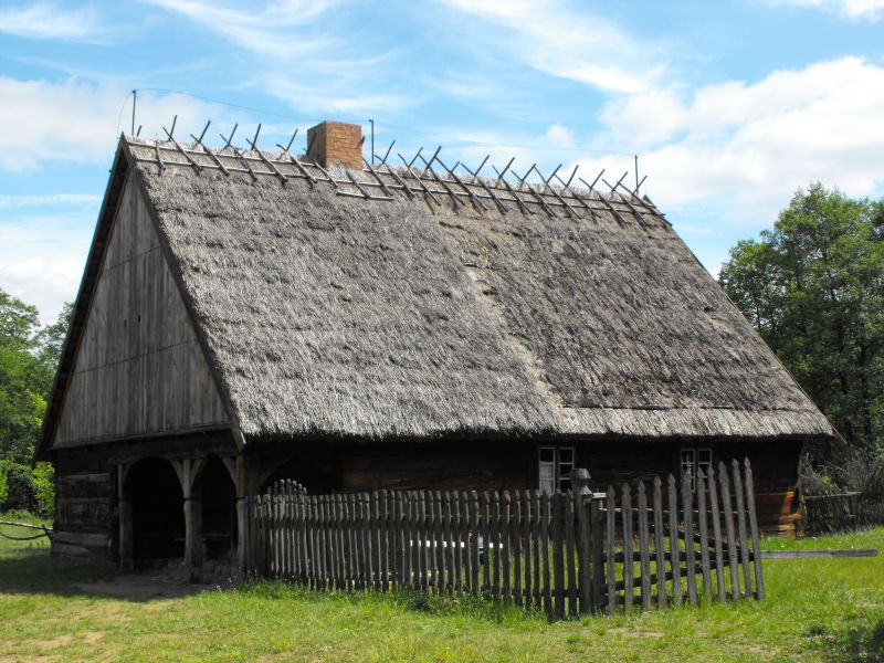 Chałupa dobrzyńska z ok. 1760 roku ze wsi Kamienny Smug - najstarsza chałupa w skansenie. Budowla o konstrukcji zrębowej z szerokich bali łączonych na węgłach na „rybi ogon”. Dach dwuspadowy z kozłami, kryty słomą. Od strony szczytowej, podcień narożny, wsparty na trzech słupach.