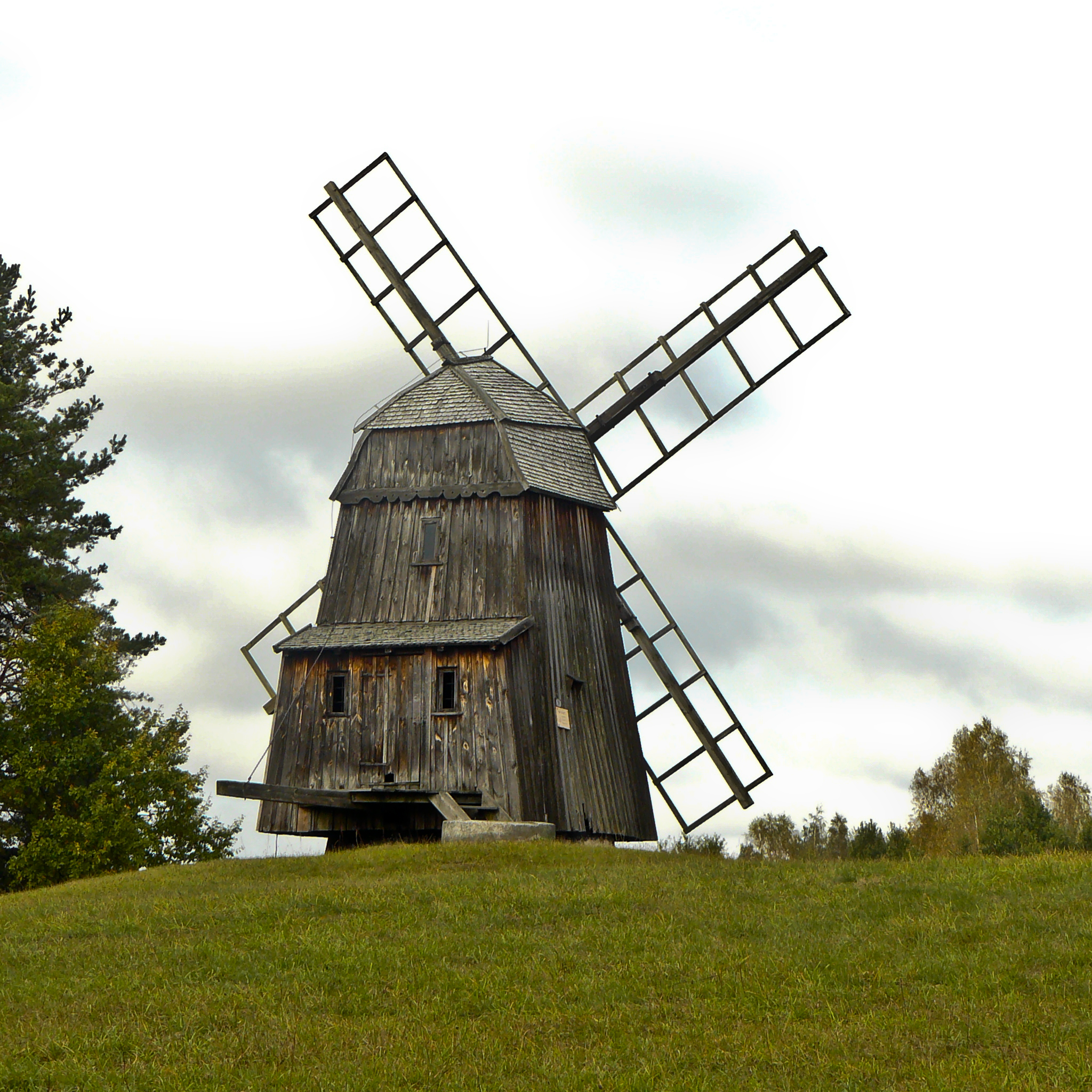 Drewniany wiatrak holenderski. Korpus wiatraka jest nieruchomy, w kierunku wiatru obracana była tylko „czapa”, na której osadzone są skrzydła. Wiatrak o podstawie ośmiokąta na kamiennej podmurówce. Budynek dwupoziomowy o konstrukcji słupowo-szkieletowej oszalowanej poziomo deskami. Dach mansardowy.