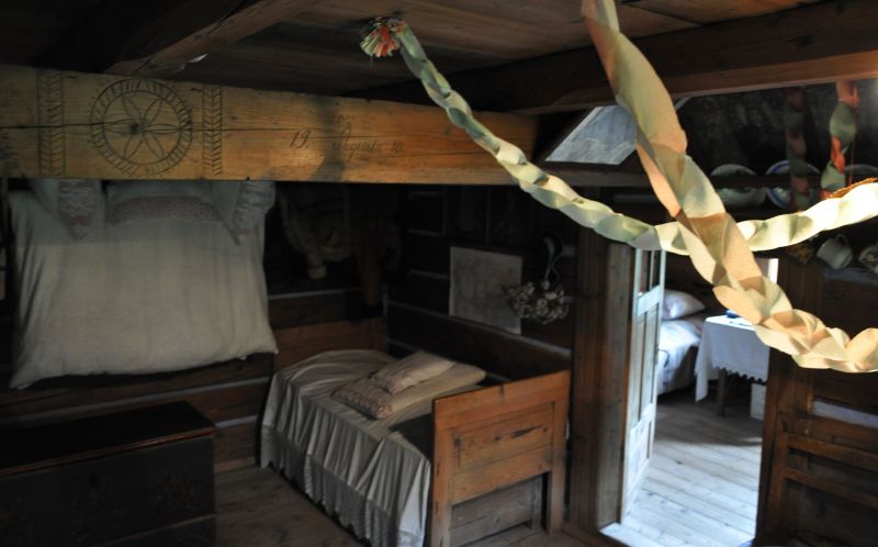 Zagroda Korkoszów w Czarnej Górze. Na zdjęciu wnętrze wielkiej izby, która pełniła funkcję sypialni.