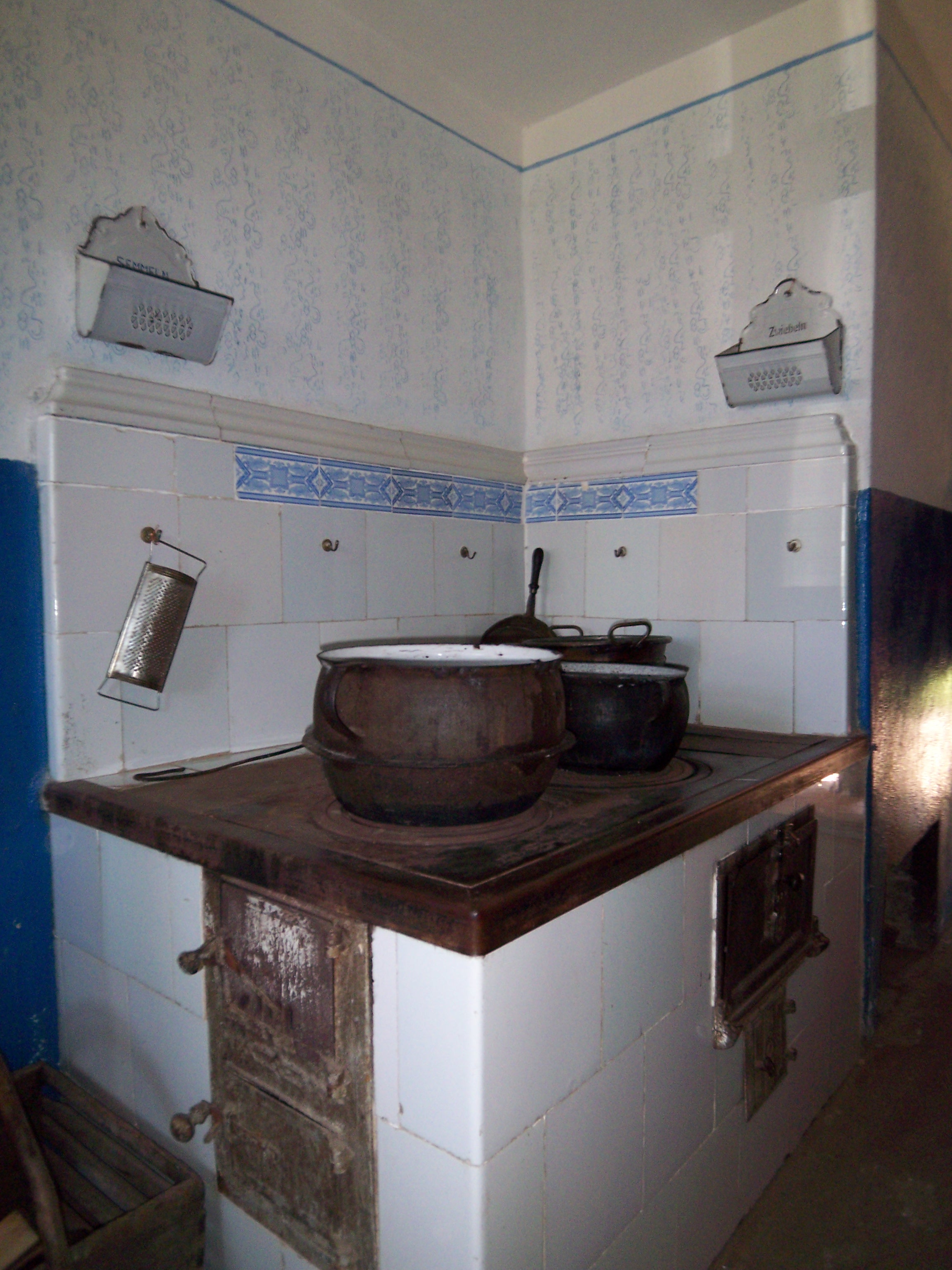 Zdjęcie zrobione w chałupie mieszkalnej, w mieszkaniu wschodnim. Na zdjęciu kuchnia kaflowa.