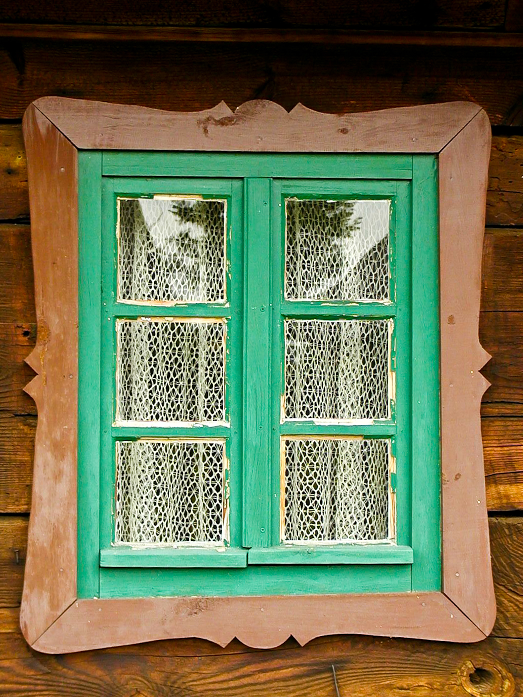 Zdobione okno chałupy zamożnego gospodarza ze wsi Pakosław (koło Lwówka) z 1834 roku.