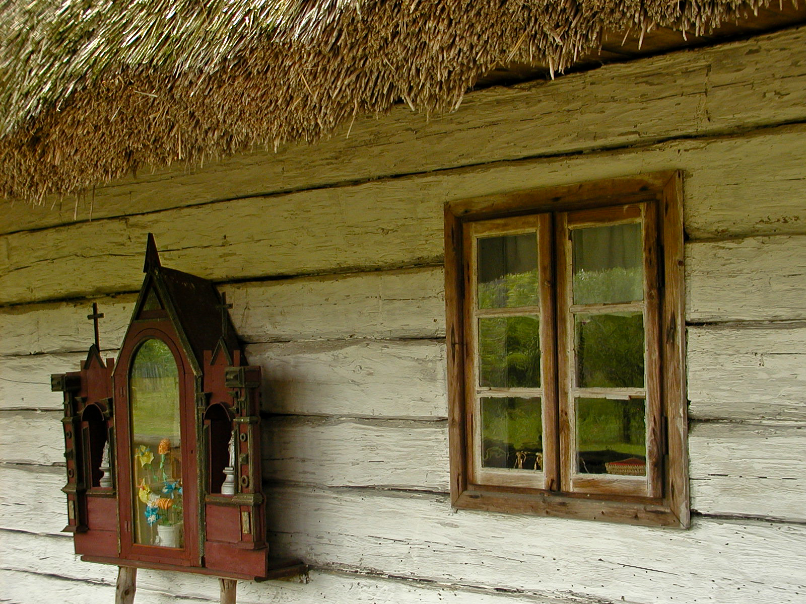 Kapliczka na ścianie chałupy ze wsi Ołobok (koło Ostrowa) z początku XIX w.