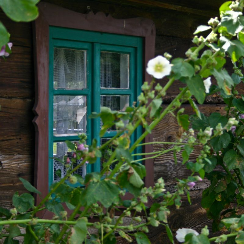 Zdobione okno chałupy zamożnego gospodarza ze wsi Pakosław z 1834 roku.