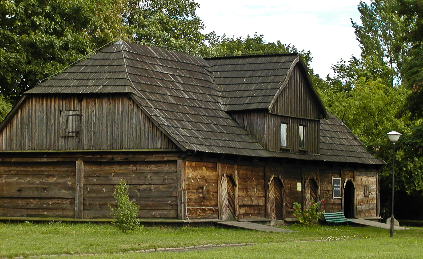 Spichrz dworski ze wsi Majków (koło Kalisza) z końca XVIII w. Budynek o konstrukcji sumikowo-łątkowej. Dach naczółkowy kryty gontem. Spichrz znajduje się obecnie w tzw. "Małym Skansenie" w Dziekanowicach.