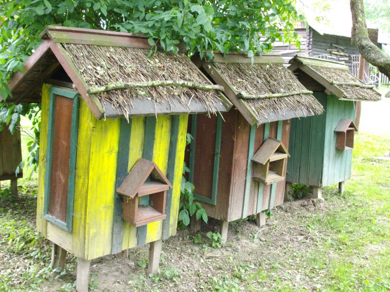 Ule skrzynkowe z Markowej i okolic z lat 30 XX wieku. Ule kryte dwuspadowymi daszkami.