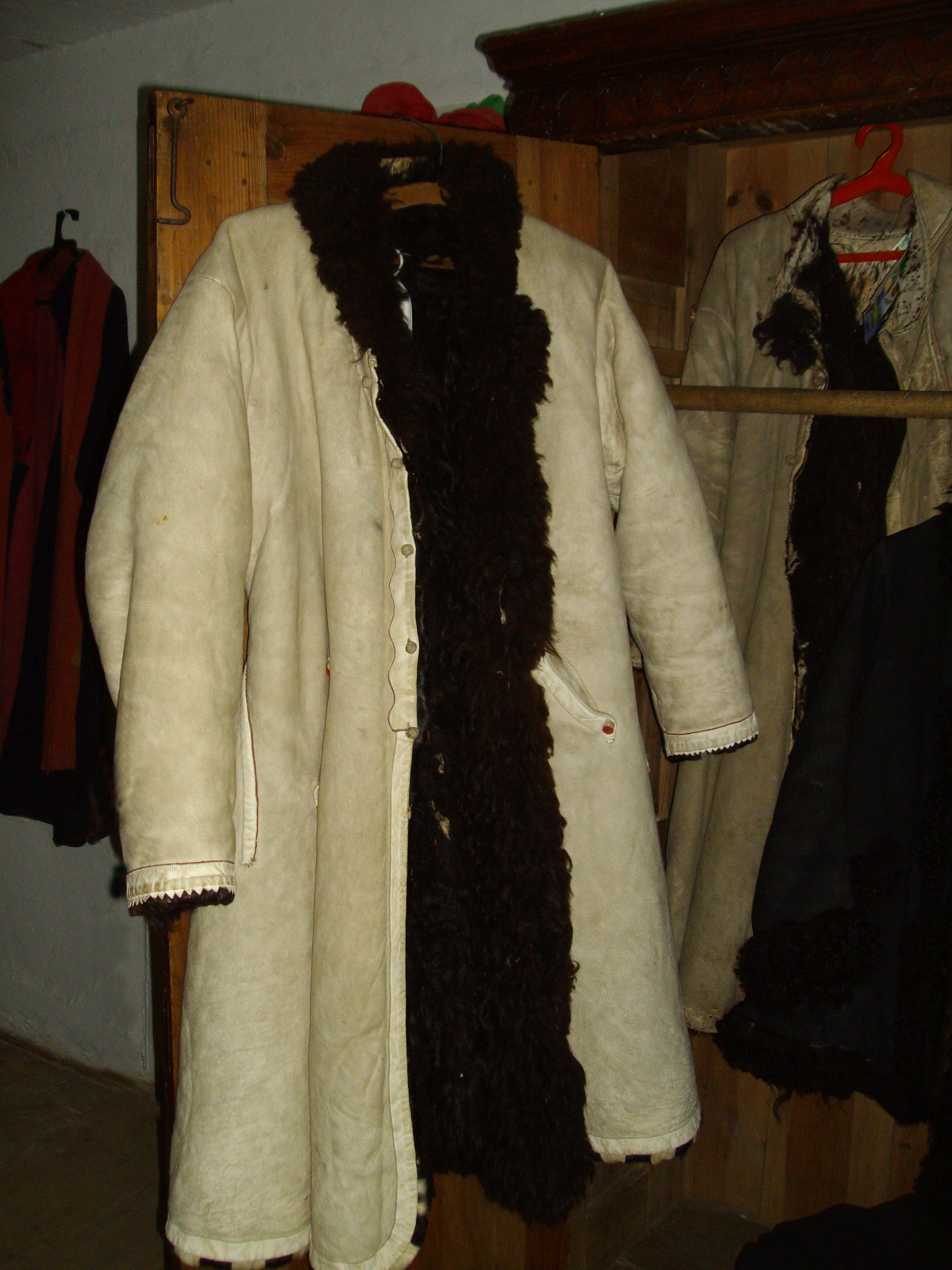 Kożuch z biało wyprawionej skóry. Strój typowy dla Markowej i jej okolic.