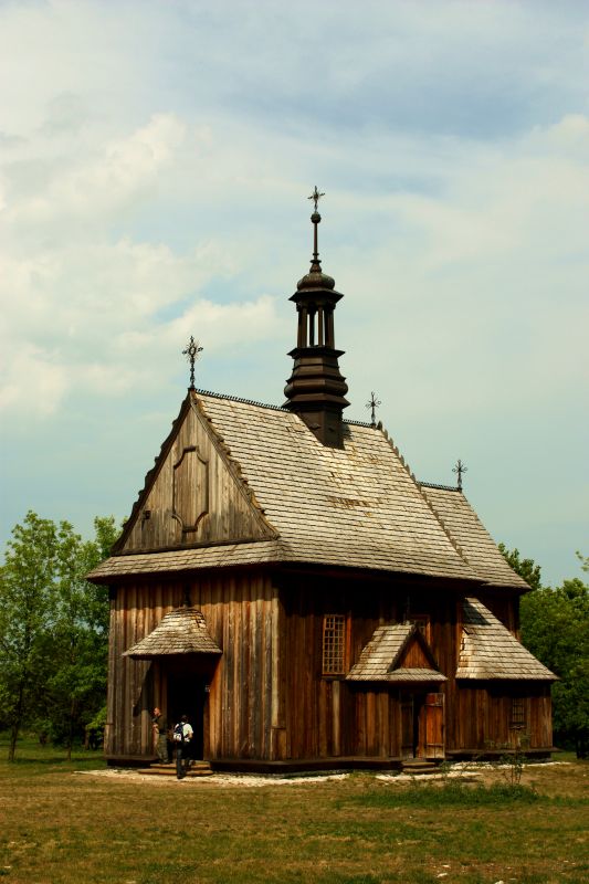 Kościół ze wsi Rogowo nad Wisłą z 1763 roku. Kościół z bali drewnianych o konstrukcji zrębowej szalowanej pionowymi deskami. Dach o konstrukcji krokwiowo-płatwiowej, dwuspadowy kryty gontem z okapem wykończonym szerokim profilowanym gzymsem.