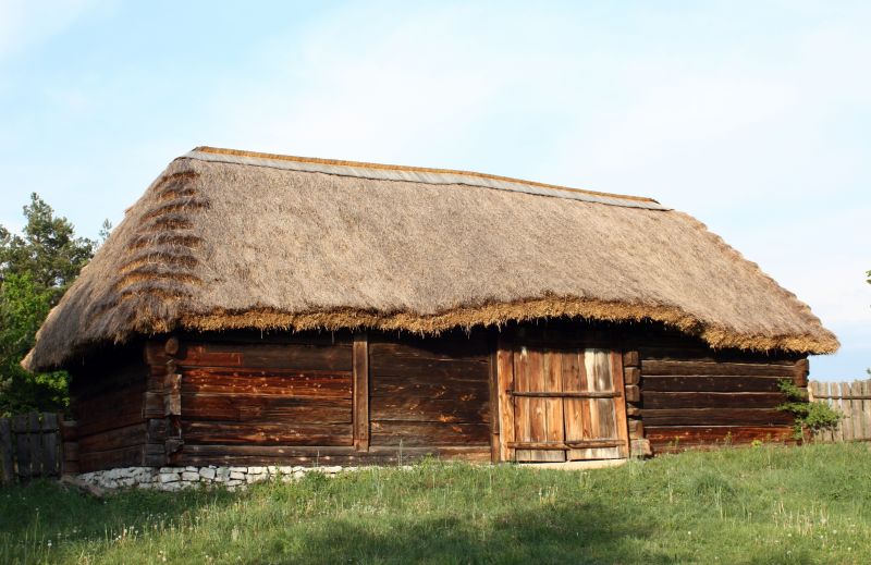 Stodoła ze wsi Radkowice. Budynek o konstrukcji zrębowej mieszanej z sumikowo-łątkową. Dach czterospadowy kryty słomiana strzechą.