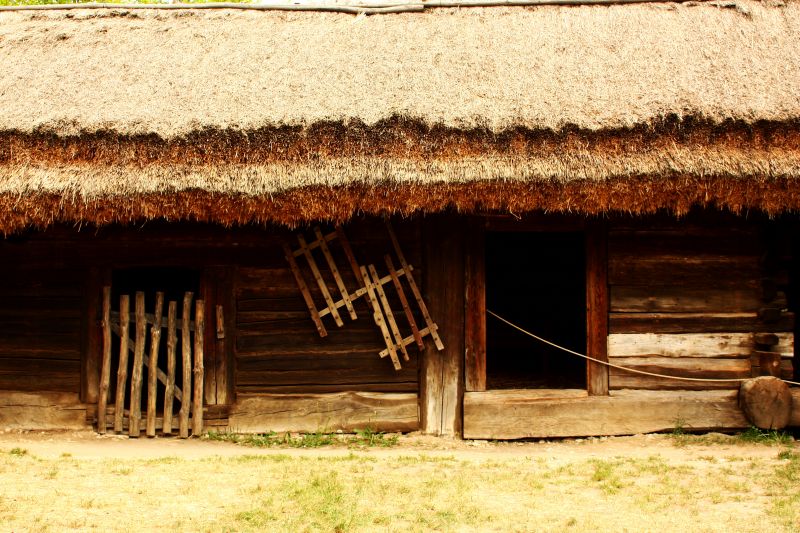 Budynek inwentarski. Budynek o konstrukcji zrębowej mieszanej z sumikowo-łątkową. Dach kryty słomianą strzechą.