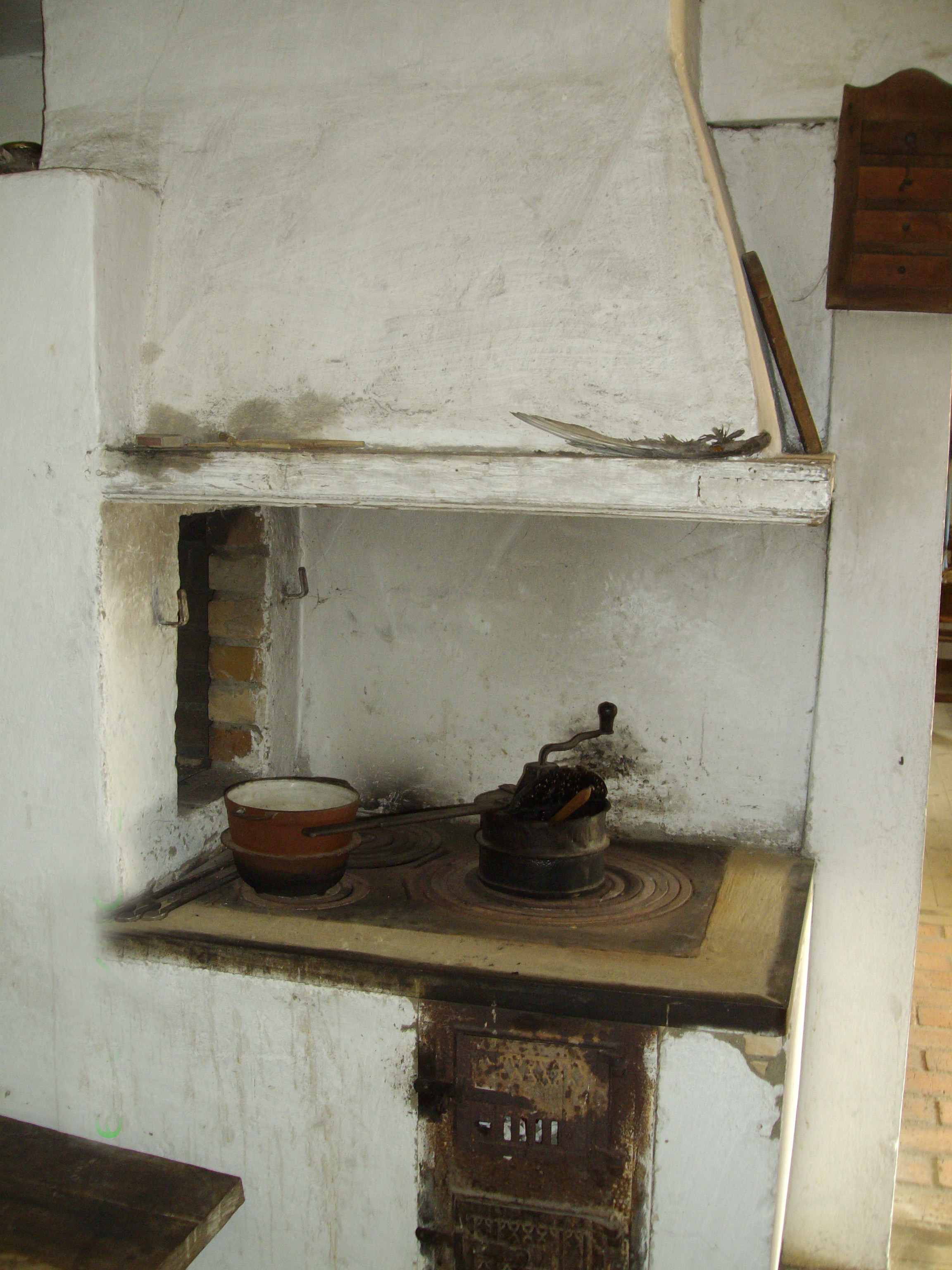 Urządzenie ogniowe z paleniskiem zamkniętym (typ angielski) i z piecem chlebowym. Nad kuchnią kaptur.