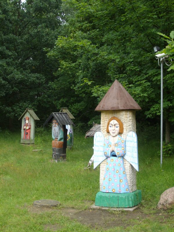 Pasieka uli figuralnych. Składa się na nią kilkanaście uli wykonanych z drzewnych kłód rzeźbionych, obrazujących m.in. św. Ambrożego (patrona pszczelarzy) niedźwiedzia, babę, dziada. Postacie częściowo polichromowane, przykryte drewnianymi daszkami. Autorem jest Józef Chełmowski z Brus, współcześnie żyjący, znany kaszubski artysta ludowy, malarz, rzeźbiarz i poeta. |