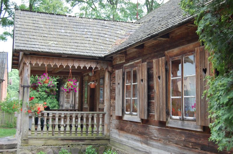 Ganek dworu ze wsi Brzózki z XIX wieku. Budynek z bali sosnowych o konstrukcji zrębowej. Dach naczółkowy o konstrukcji krokwiowo-jętkową pokryty gontem. Ganek bogato zdobiony z balustradą z kolumienek. Okna z okiennicami z wycięciami w kształcie serduszek.