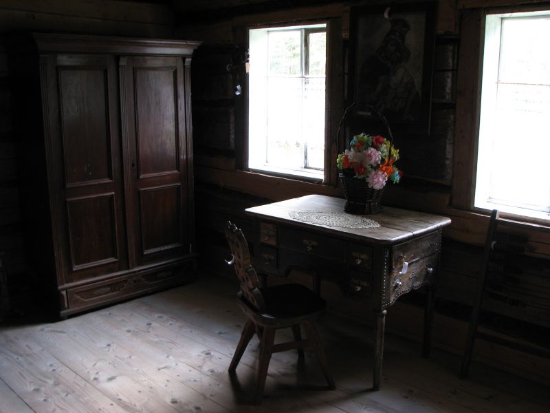 Chałupa wójta Maja (Kostkowiaka), z Sidziny, z II połowy XVIII wieku. Wnętrze białej izby.