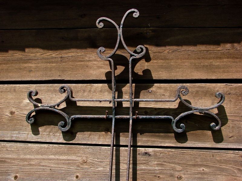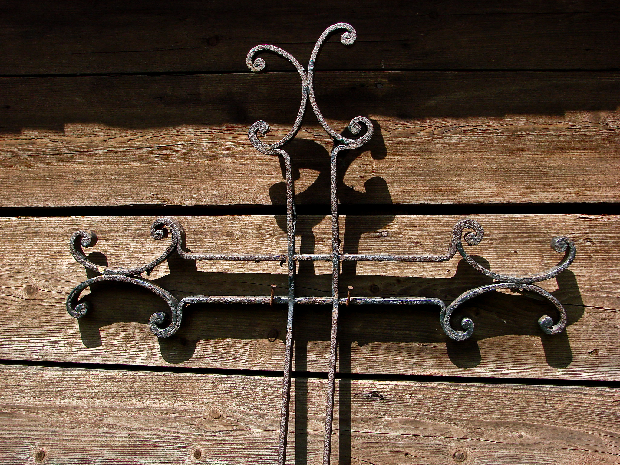 Muzeum Kultury Łemkowskiej w Zyndranowej. Krzyż kuty, metalowy - fragment "łemkowskiej ściany płaczu".