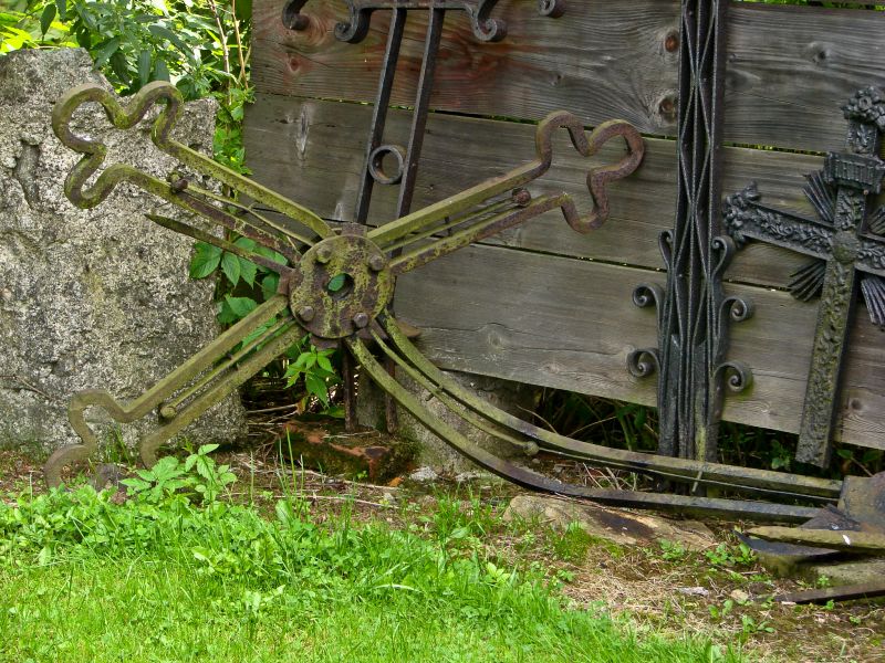 Muzeum Kultury Łemkowskiej w Zyndranowej. Krzyż kuty, metalowy - element "łemkowskiej ściany płaczu".