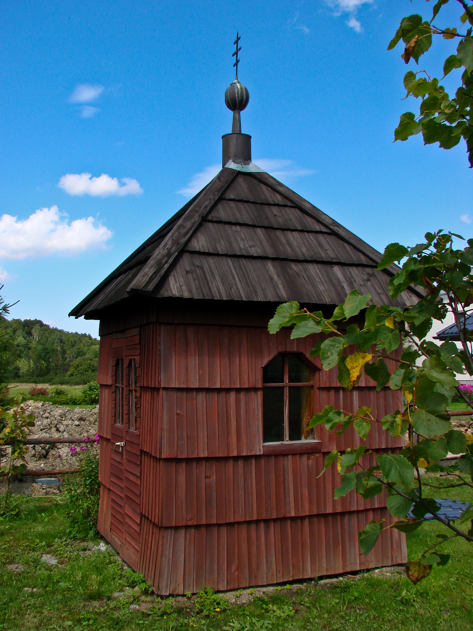 Muzeum Kultury Łemkowskiej w Zyndranowej. Rekonstrukcja łemkowskiej kapliczki z przełomu XIX/XX wieku.