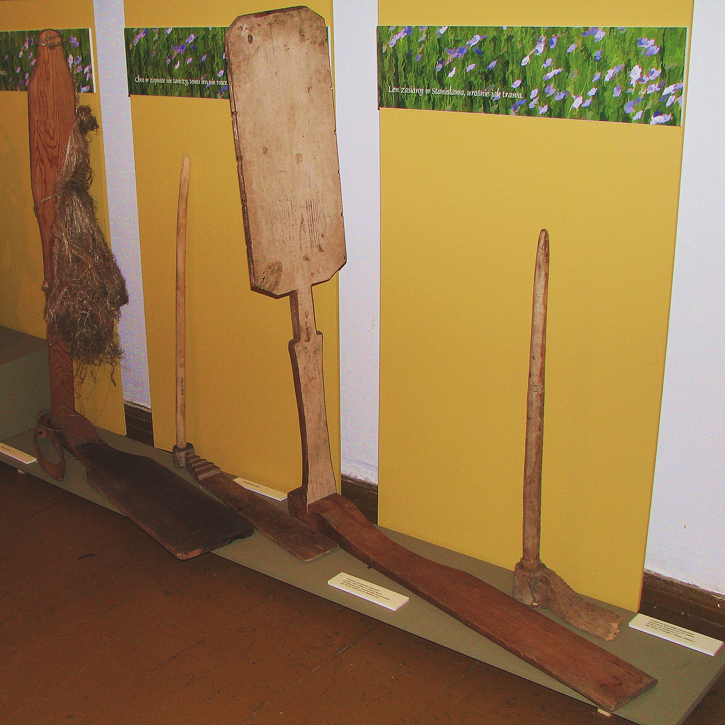 Przęślica łopatkowa (z lewej strony) wykonana przed 1940 rokiem we wsi Szmańkowczyki (woj. tarnopolskie) oraz przęślica iglicowa dwudzielna wykonana w latach 20-tych XX wieku w okolicach Drohobycza.