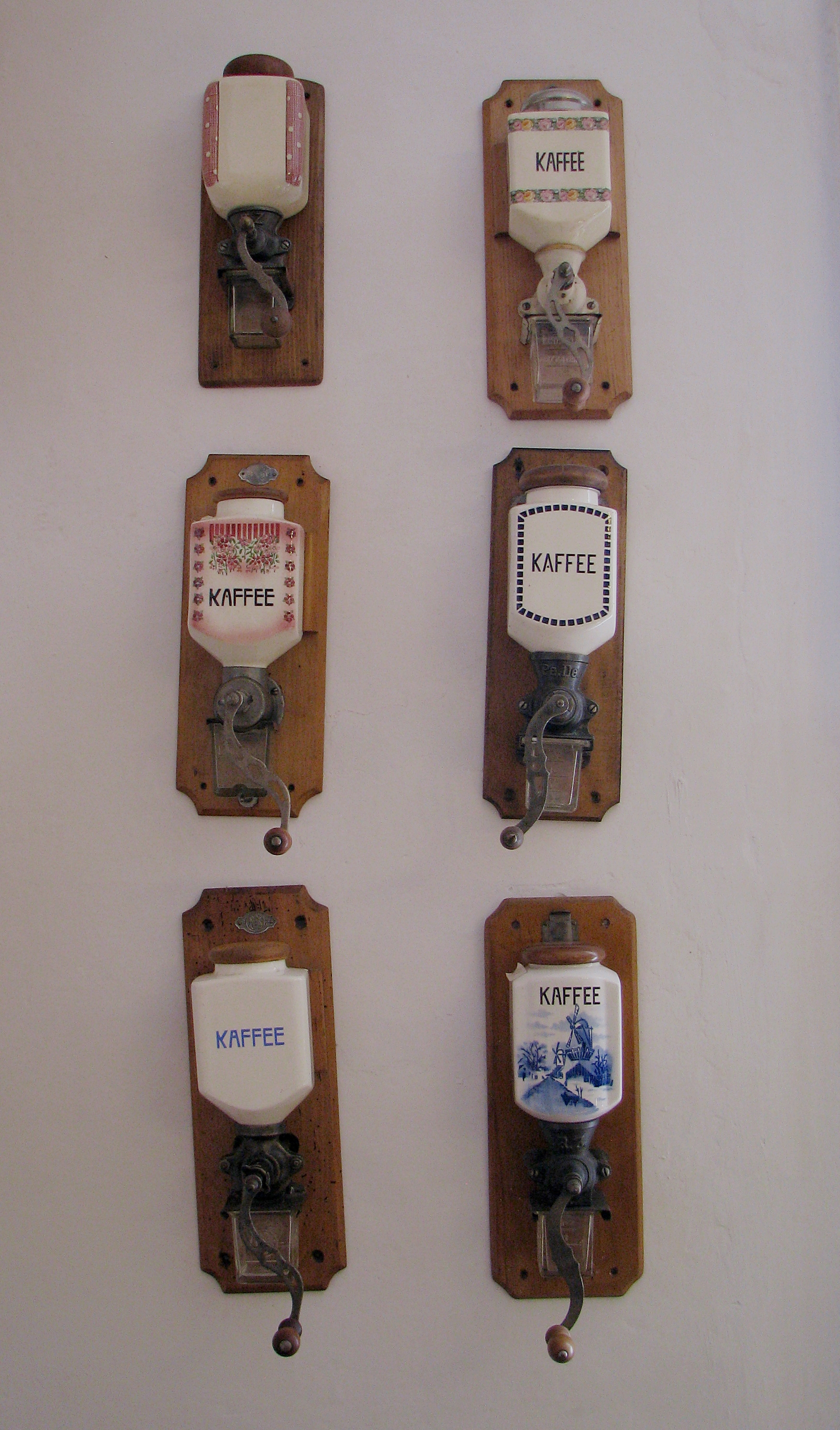 Kolekcja młynków do kawy - fragment ekspozycji muzeum.