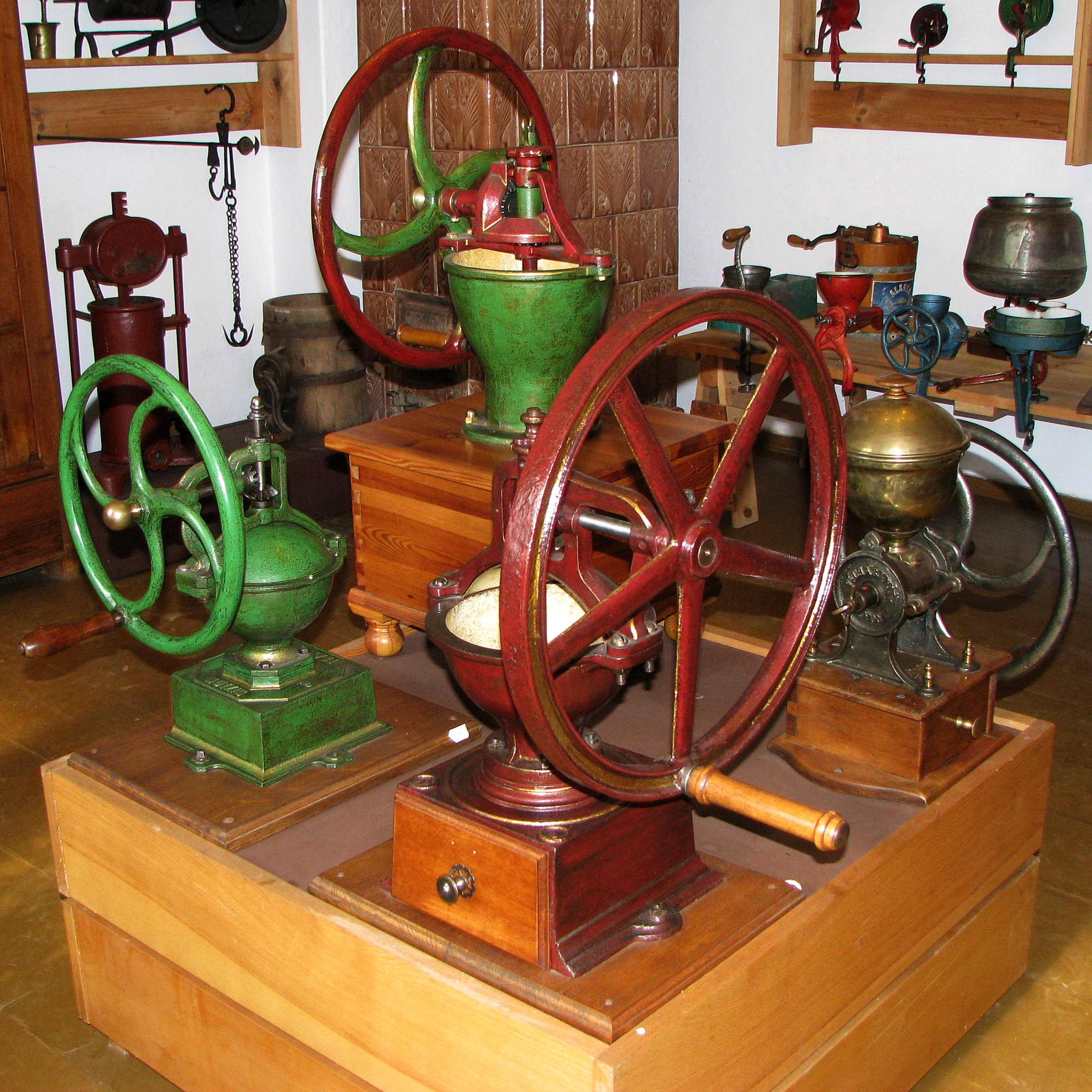 Sklepowe młynki do kawy - fragment ekspozycji muzeum.