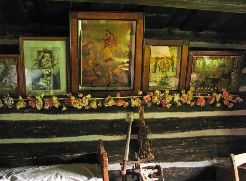 Kolekcja oleodruków – obrazów drukowanych tanią metodą oleodruku, która rozpowszechniła się w drugiej połowie XIX wieku. Oleodruki na ścianie w izbie białej chałupy Słopiakowej ozdobione kwiatami z bibuły.