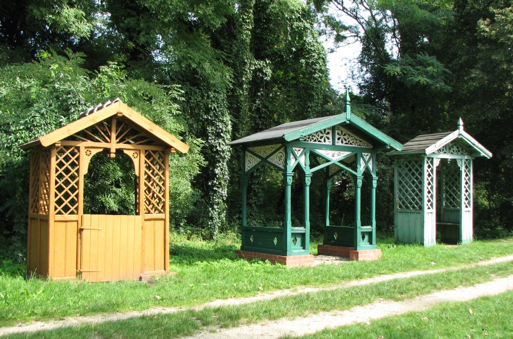 Kolekcja śląskich laub czyli ganków w Muzeum Wsi Opolskiej.