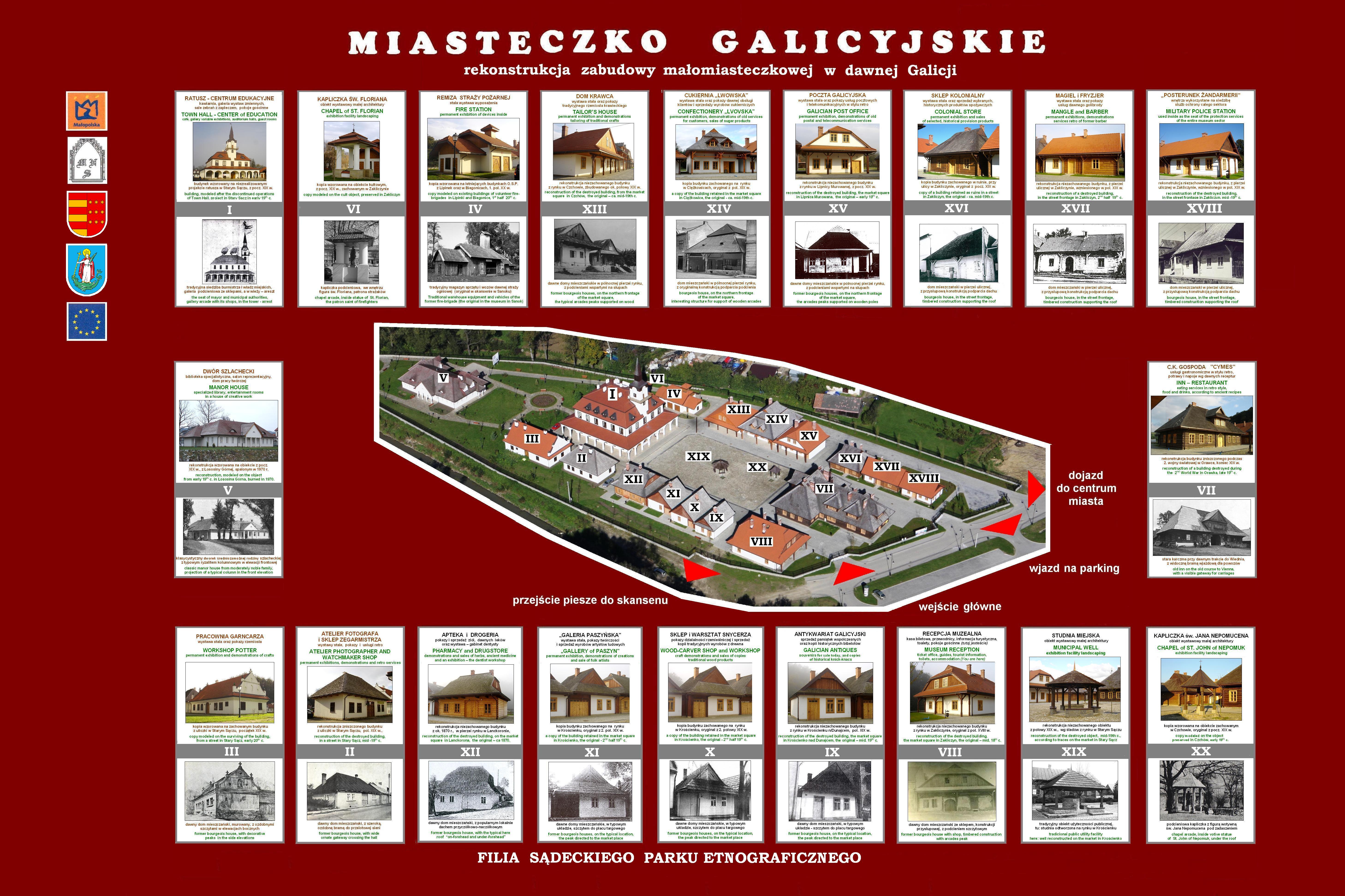 Plansza informacyjna ze zdjęciem lotniczym Miasteczka Galicyjskiego