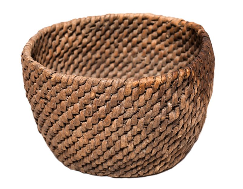 Kosz pleciony z korzenia lipowego wykorzystywany do przechowywania nasion.