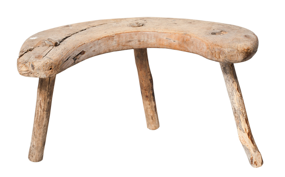 Zydelek - chodzidełko. Stołek trój-funkcyjny wykorzystywany do porodów w pozycji siedzącej, jako chodzik dla dzieci, a na co dzień do dojenia krów.