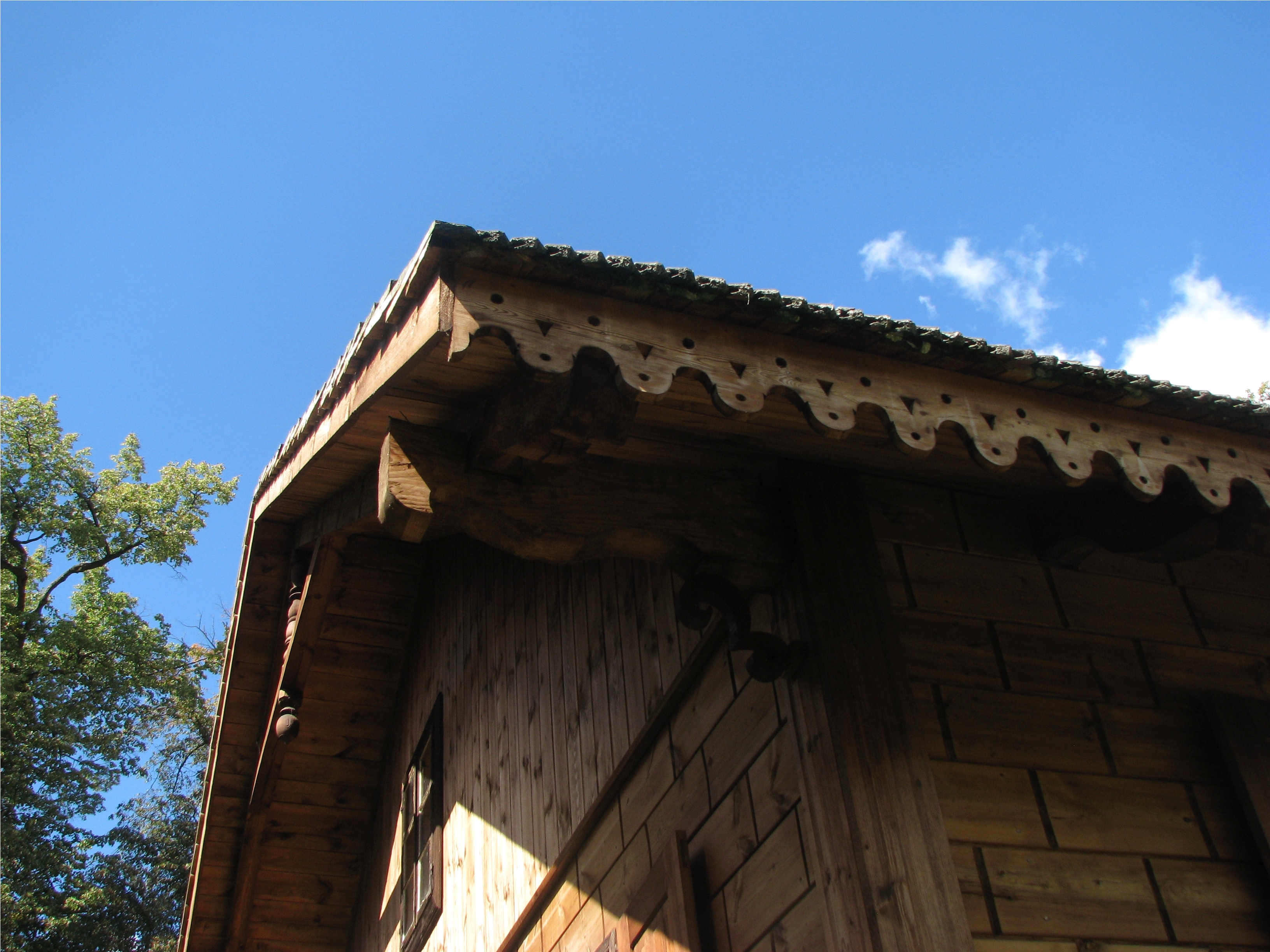 Drewniana wikarówka z Kuleszy Kościelnych. Fragment konstrukcji dachowej.