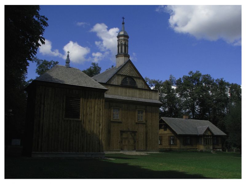 Kompleks kościelny. Od lewej dzwonnica, kościół z Bogut-Pianek i wikarówka z Kuleszy Kościelnych.