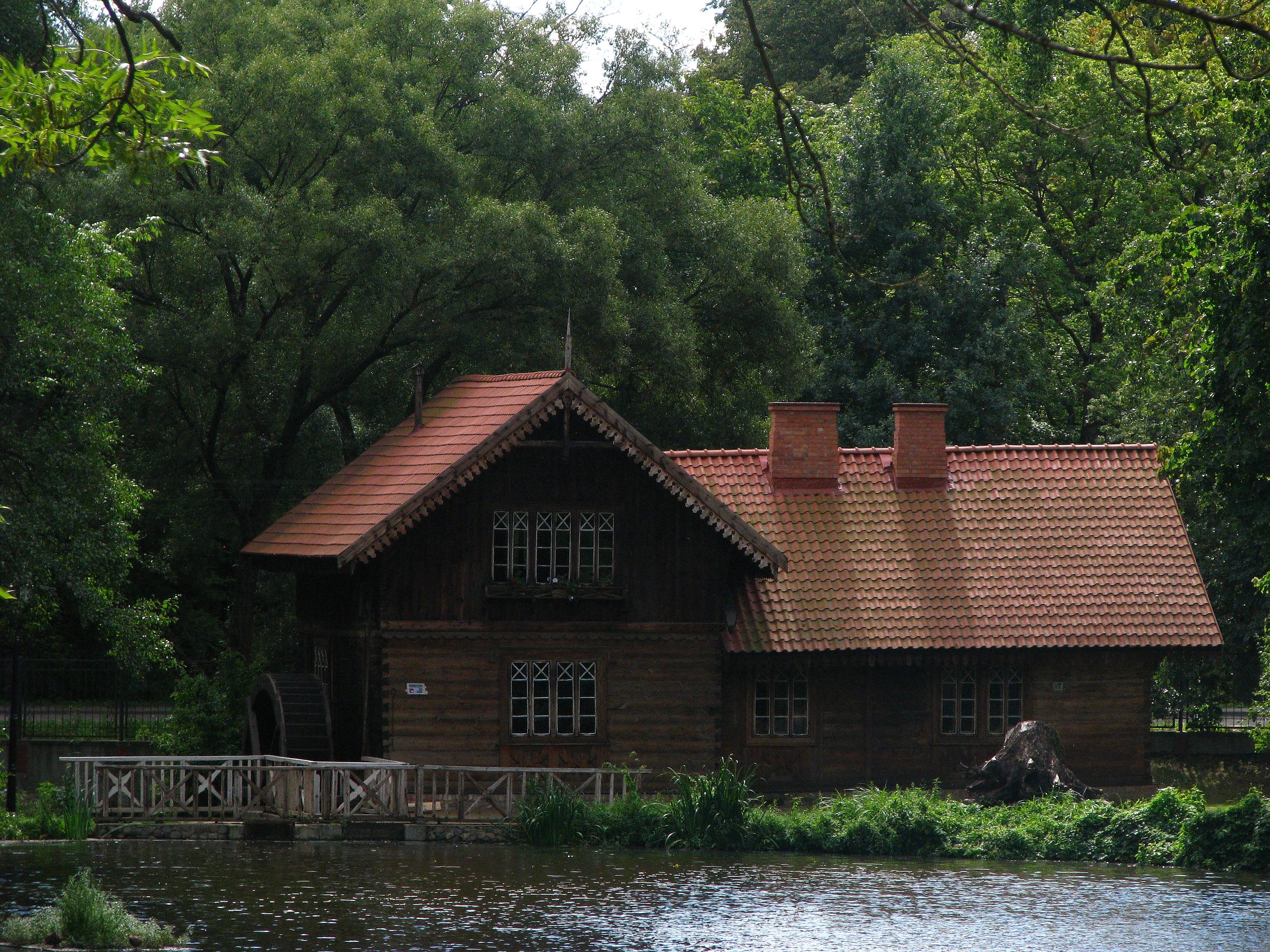 Młyn wodny z 1850 r. Obiekt in situ. Zbudowany w drugiej połowie XIX wieku, pierwotnie wchodził w skład zespołu zabudowań dworskich rezydencji pałacowej Starzeńskich. Budynek z bali o konstrukcji węgłowej, kryty dachówką „esówką”, składa się z części mieszkalnej i przemysłowej. Całość założona na planie Litery ‘L’. |