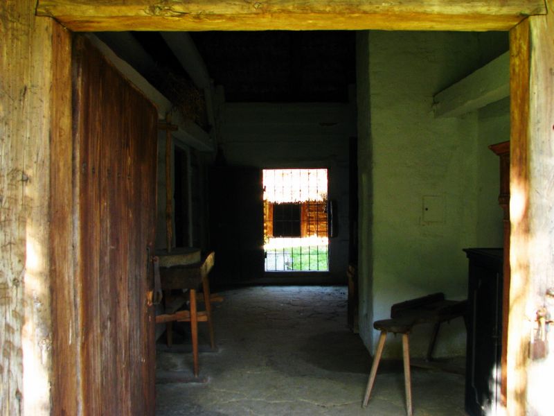 Chałupa Kielarów z Markowej. Na zdjęciu widok z sieni na plac zw. rynkiem lub uoborą, na którym mieścił się gnojownik oraz stajnię.