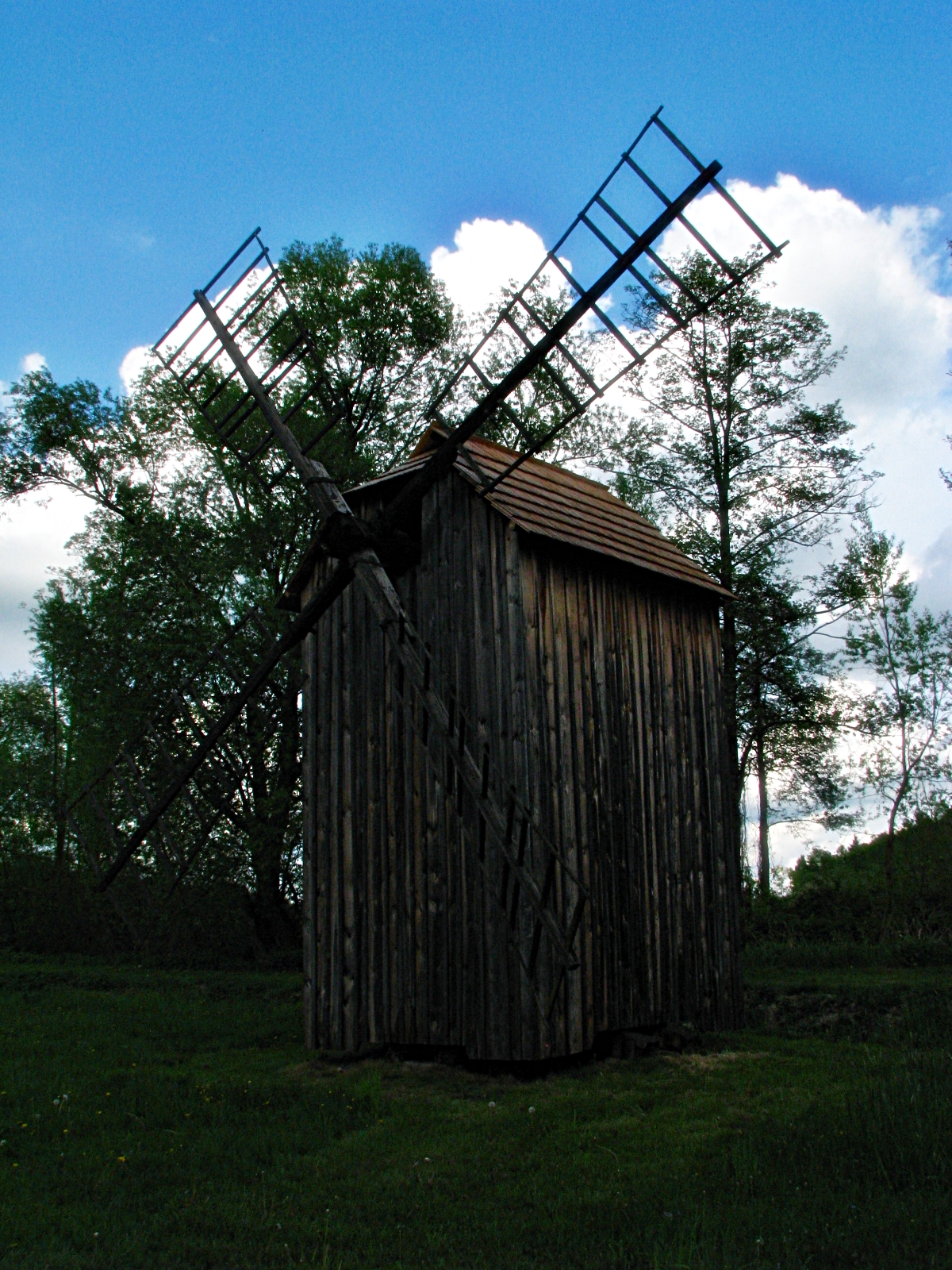 Wiatrak koźlak z Trzęsówki-Kłodzin z lat 20. XX w. Wzniesiony w Siedlance, a w 1946 r. przeniesiono go do Trzęsówki-Kłodzin, użytkowany do 1950 r. Za www.muzeumkolbuszowa.pl: "reprezentuje typ wiatraka „koźlaka” (obiekt zbudowany jest na nieruchomej konstrukcji zw. kozłem lub królem, i z zawieszonym na niej ruchomym budynkiem ze skrzydłami, zw. śmigami; cały obiekt przekręcany był do kierunku wiatru za pomocą dyszli). Wyposażony jest w 4 śmigi, zapierzone deseczkami, które dokładano lub zdejmowano w zależności od siły wiatru. Wnętrze jest jednoprzestrzenne, dwupoziomowe, wyposażone w urządzenia mielnicze napędzane siłą wiatru". |