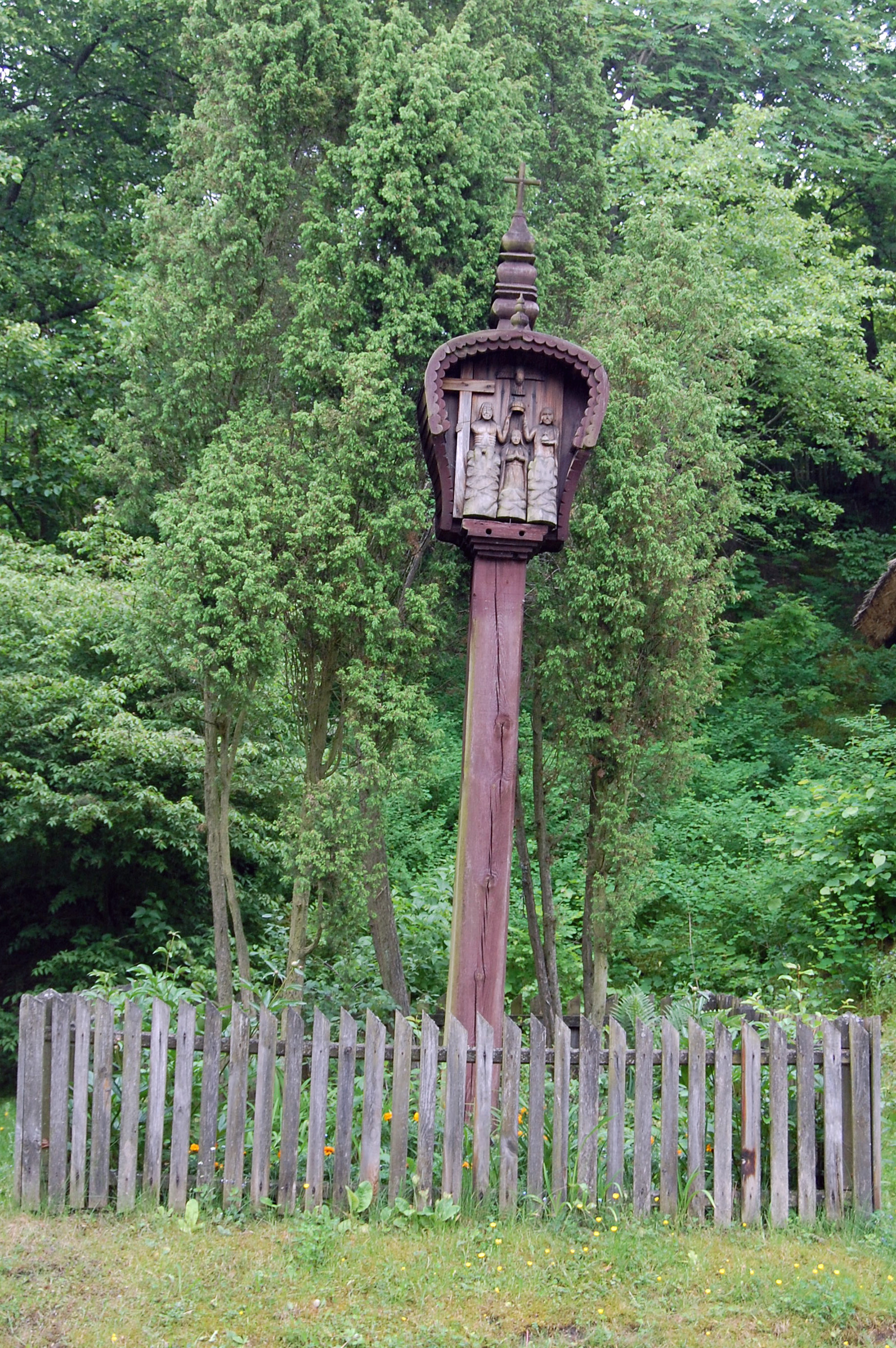 Kapliczka słupowa z XIX wieku przedstawiająca Świętą Trójcę.