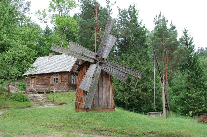 Wiatrak ze wsi Plewki z 1922 r. Wiatrak typu paltrak - obracany wokół osi na rolkach. Budynek o konstrukcji szkieletowej obitej deskami (szalunek).