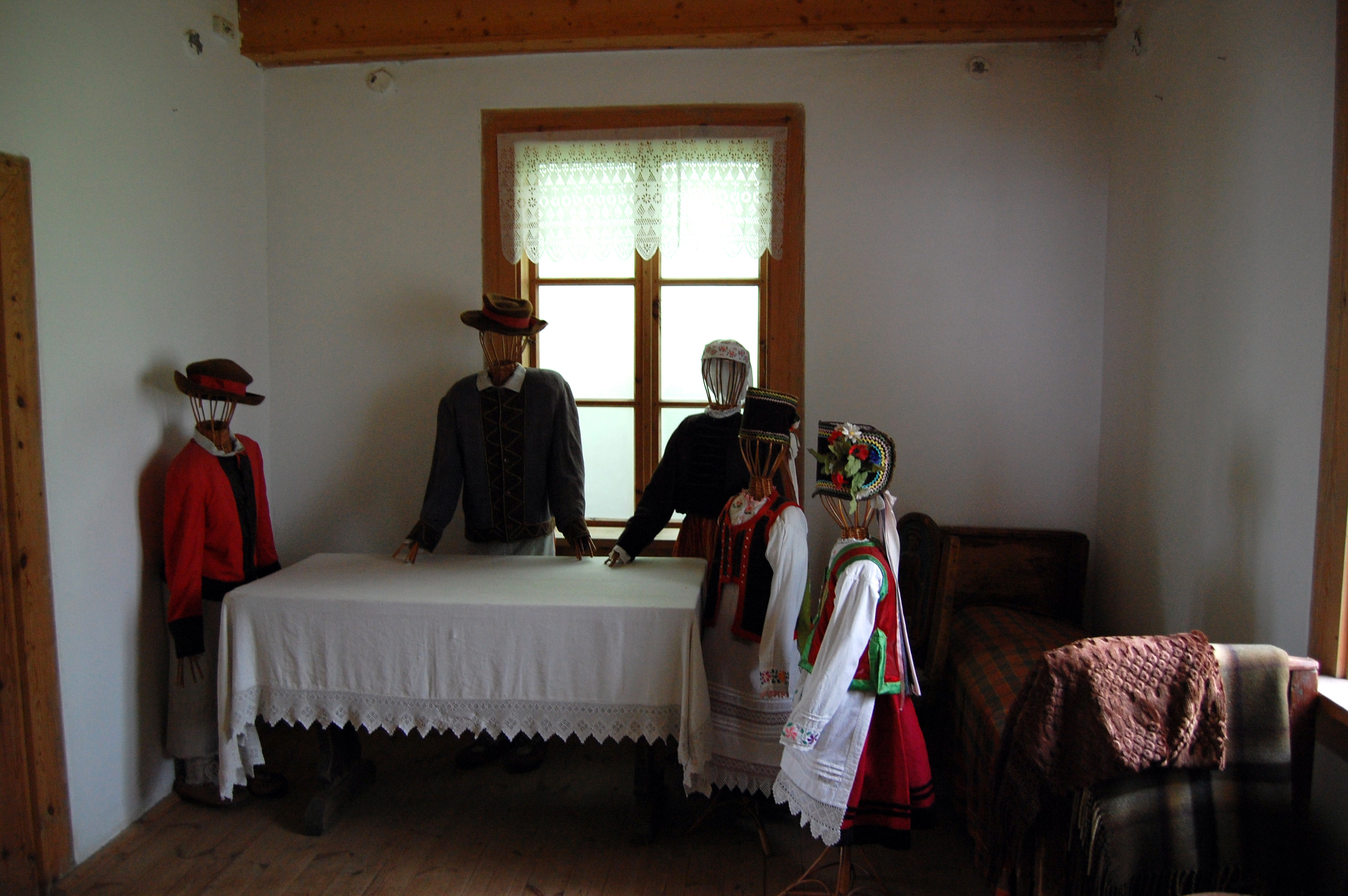 Wystawa stroju ludowego z Kurpiowskiego Puszczy Zielonej w Lesniczówce ze wsi Zawodzie.