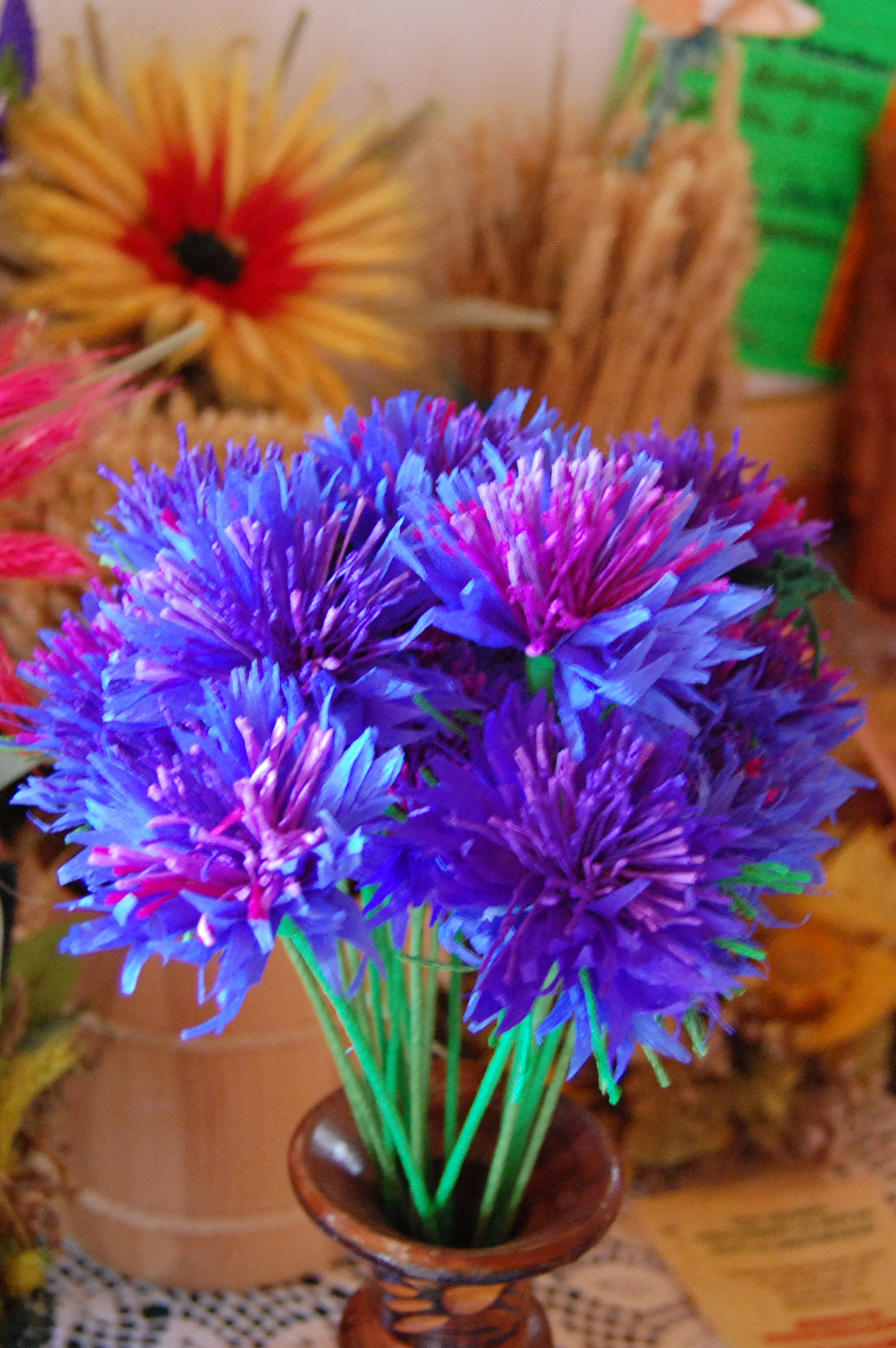 Charakterystyczne dla Kurpiowszczyzny kwiaty z bibuły.