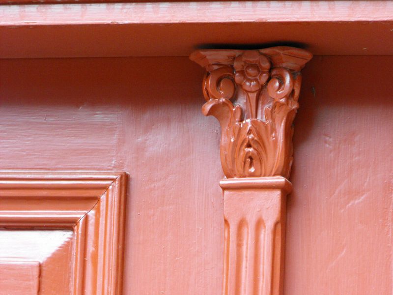 Drzwi robotniczego domu z ulicy Kopernika 42 - element dekoracji framugi.