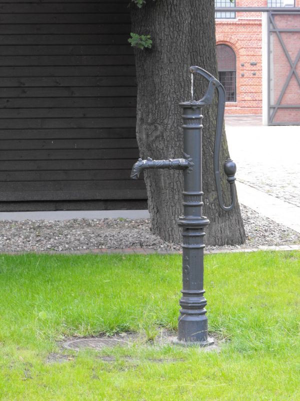 Zdobiona pompa ręczna – z takich pomp pobierano wodę do codziennego użytku na przełomie XIX i XX wieku.