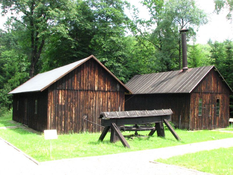 Kieraty pompowe, pochodzące z okresu międzywojennego (budynek z lewej) i przełomu XIX i XX wieku (budynek z prawej). Służyły do grupowego pompowania ropy z odwiertów.