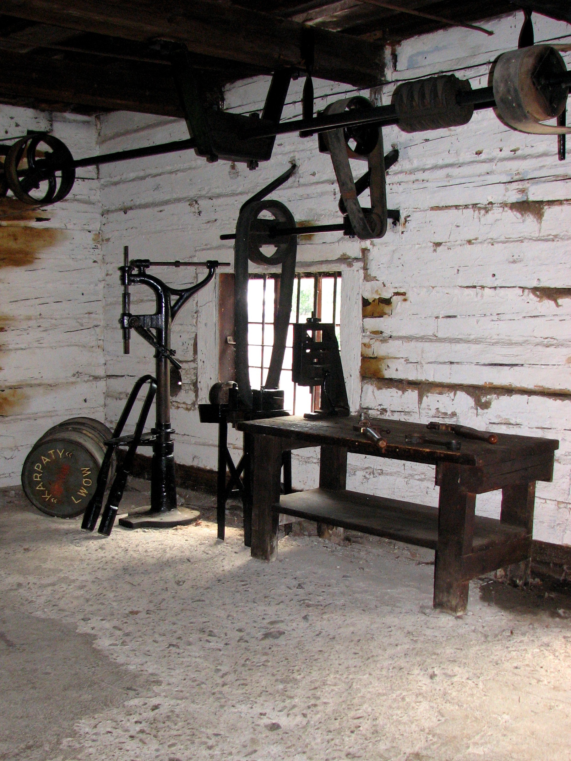 Wnętrze warsztatu kopalni Bóbrka wybudowanego w 1864 roku. Znajdują się tam zabytkowe urządzenia i maszyny